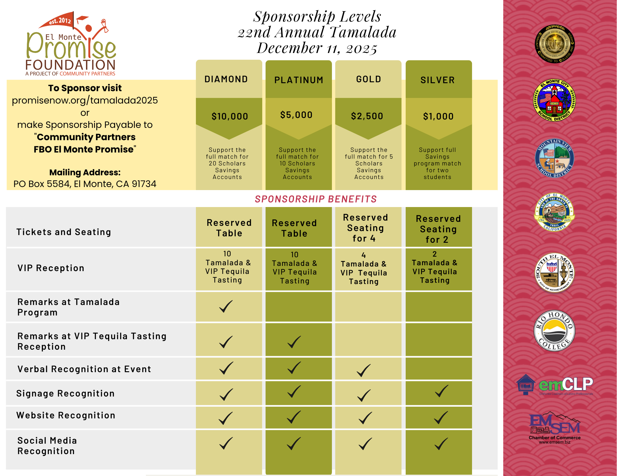 Come together for a night of delicious tamales as we celebrate our community, reflect on our achievements, and honor the outstanding contributions of our educators with the 2025 Bobby Salcedo Esperanza Award. This year's Tamalada will be held in person at the Grace T. Black Auditorium in El Monte, CA.